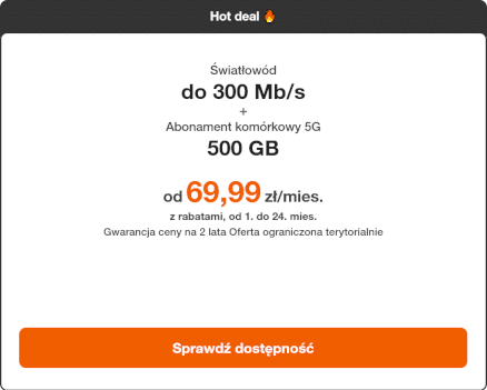 Orange wystartował z promocją na Orange Światłowód w opcji do 300 Mb/s, który można kupić sam lub z abonamentem komórkowym.