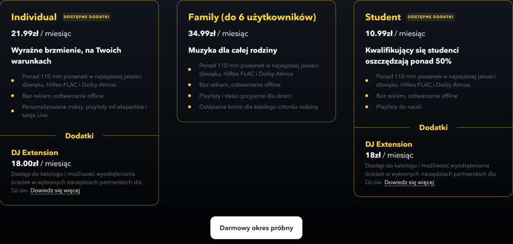 Osoby, które chcą nadal korzystać z serwisu Tidal, mogą wybrać aktualną ofertę bezpośrednio na stronie www.tidal.com.